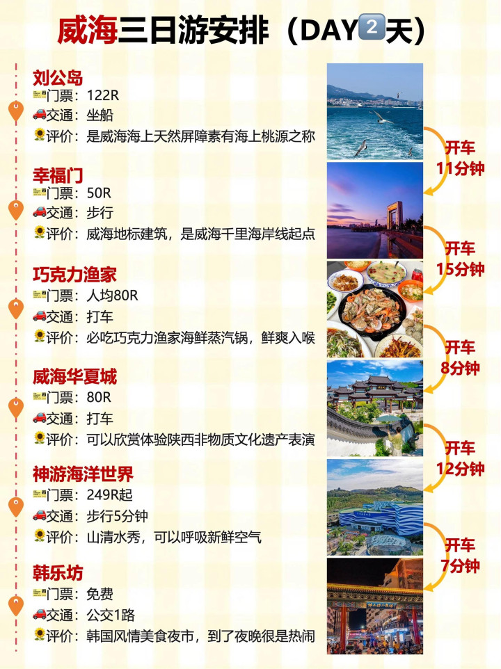 Day2️⃣:刘公岛➡️幸福门➡️巧克力渔家➡️威海华夏城➡️神游海鲜世界➡️韩乐坊